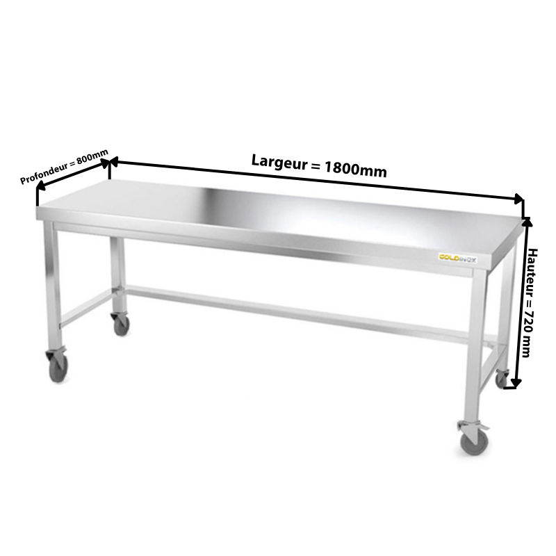 Nos tables en acier inoxydable de marque GOLDINOX® vous permettent un meilleur aménagement de votre cuisine. Elles sont conçues pour une utilisation intensive et supportent des charges très élevées. Nos tables inox répondent aux normes obligatoires pour le mobilier en milieu professionnel. Le montage est très simple à réaliser et nécessite peu de temps d'exécution.