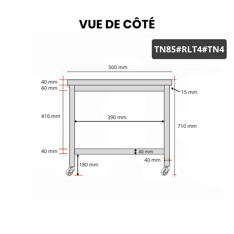 - Compatible avec toutes les tables en acier inoxydable TN85 et TN85A