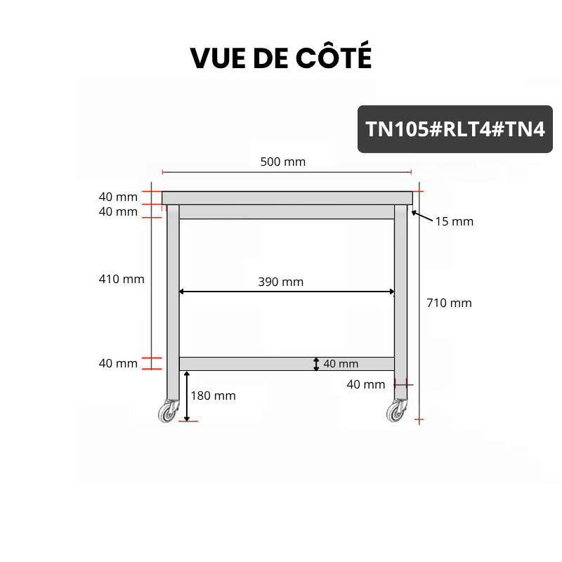 - Compatible avec toutes les tables en acier inoxydable TN105 et TN105A