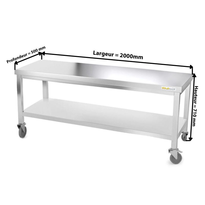 Nos tables en acier inoxydable permettent un meilleur aménagement de votre cuisine. Elles sont conçues pour une utilisation intensive et supportent des charges très élevées. Nos tables inox répondent aux normes obligatoires pour le mobilier en milieu professionnel. Le montage est très simple à réaliser et nécessite peu de temps d'exécution. Dotée de 4 roues robustes dont 2 avec freins, vous aurez alors tout le confort d'une table inox mobile, permettant un déplacement de votre matériel sans effort.