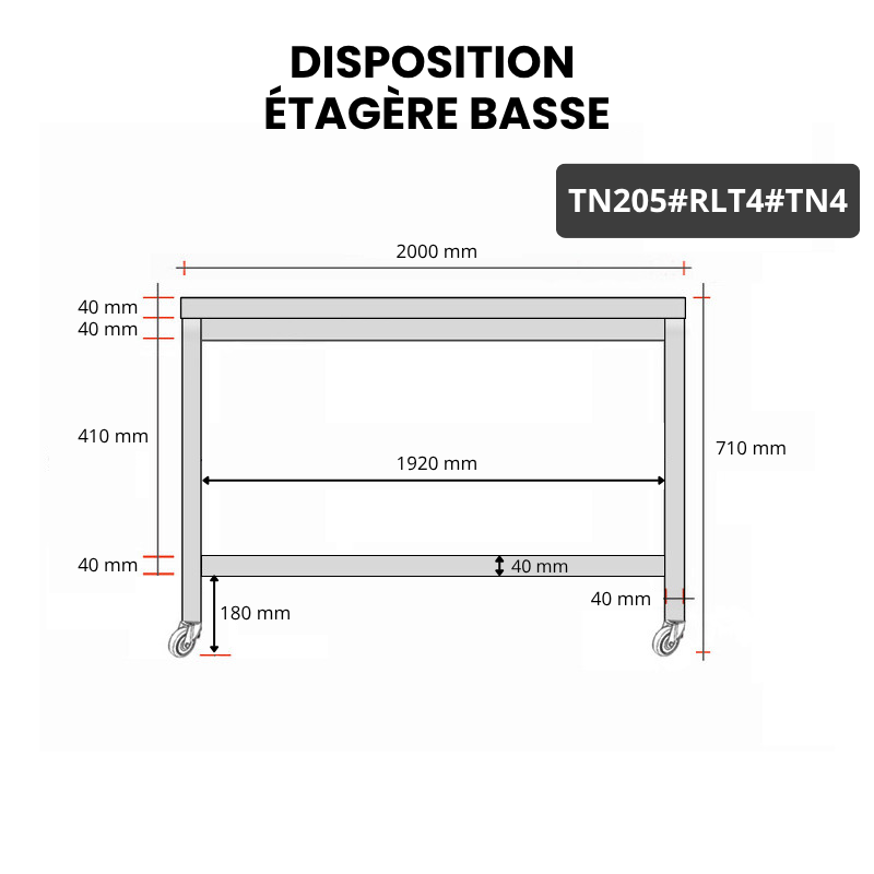 - Compatible avec toutes les tables en acier inoxydable TN205 et TN205A
