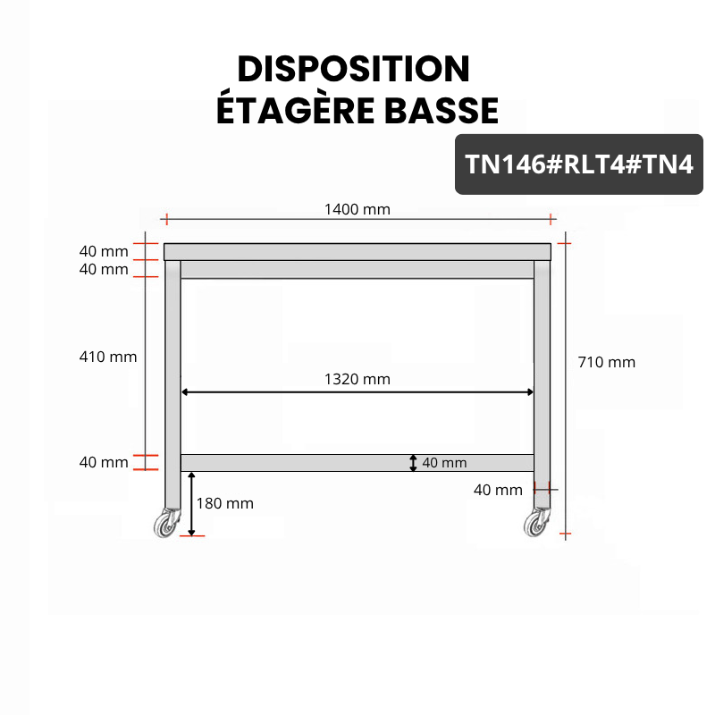 - Compatible avec toutes les tables en acier inoxydable TN146 et TN146A