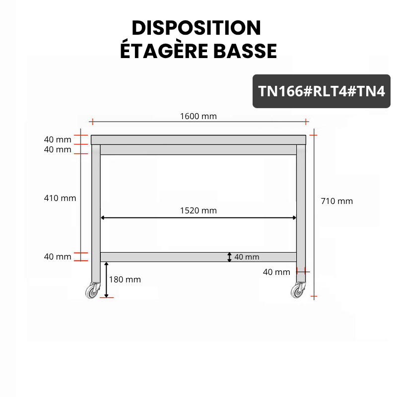 - Compatible avec toutes les tables en acier inoxydable TN166 et TN166A