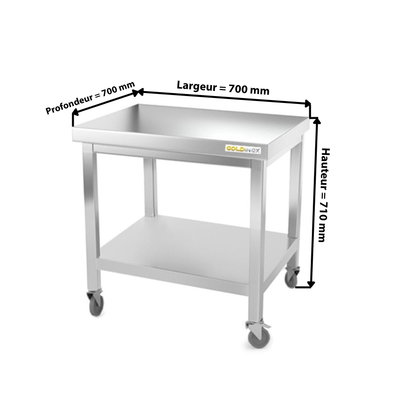 Nos tables en acier inoxydable permettent un meilleur aménagement de votre cuisine. Elles sont conçues pour une utilisation intensive et supportent des charges très élevées. Nos tables inox répondent aux normes obligatoires pour le mobilier en milieu professionnel. Le montage est très simple à réaliser et nécessite peu de temps d'exécution. Dotée de 4 roues robustes dont 2 avec freins, vous aurez alors tout le confort d'une table inox mobile, permettant un déplacement de votre matériel sans effort.