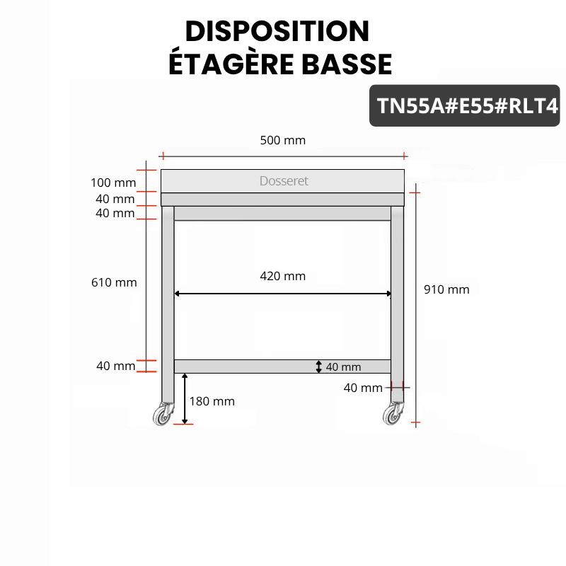 - Compatible avec toutes les tables en acier inoxydable TN55 et TN55A