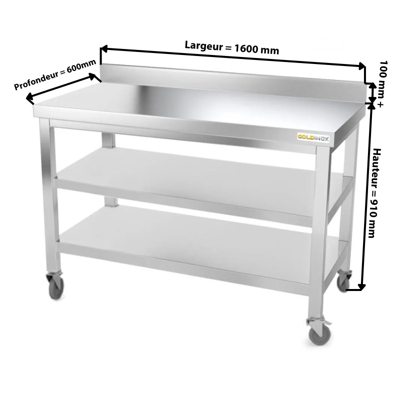 Nos tables en acier inoxydable permettent un meilleur aménagement de votre cuisine. Elles sont conçues pour une utilisation intensive et supportent des charges très élevées. Nos tables inox répondent aux normes obligatoires pour le mobilier en milieu professionnel. Le montage est très simple à réaliser et nécessite peu de temps d'exécution. Dotée de 4 roues robustes dont 2 avec freins, vous aurez alors tout le confort d'une table inox mobile, permettant un déplacement de votre matériel sans effort.