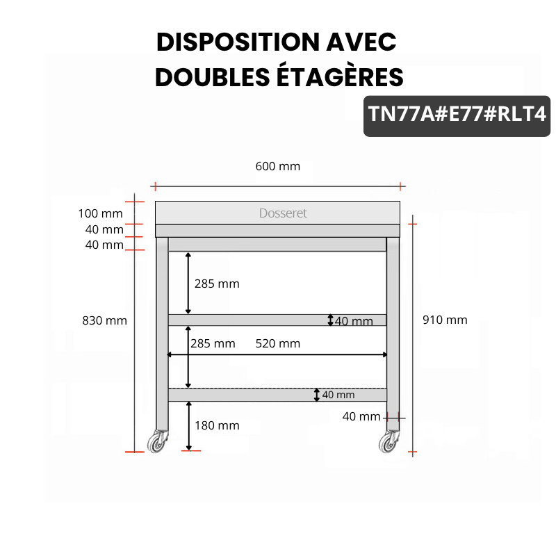 - Compatible avec toutes les tables en acier inoxydable TN77 et TN77A