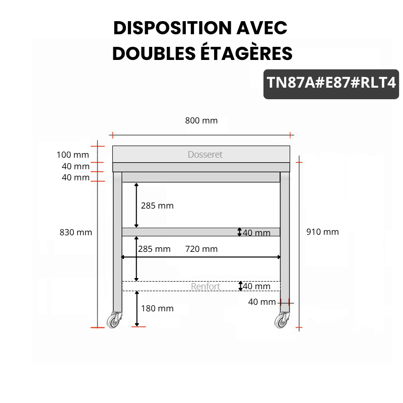 - Compatible avec toutes les tables en acier inoxydable TN87 et TN87A