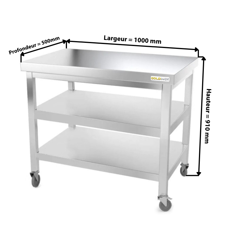 - Etagère inférieure 1000 x 500 mm en acier inoxydable pour table de travail inox