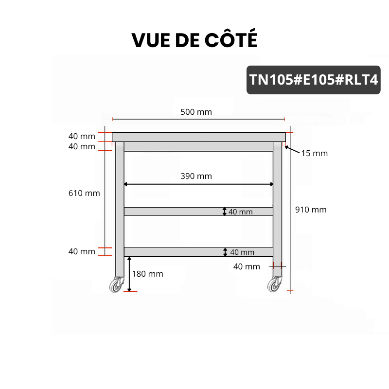 - Compatible avec toutes les tables en acier inoxydable TN105 et TN105A