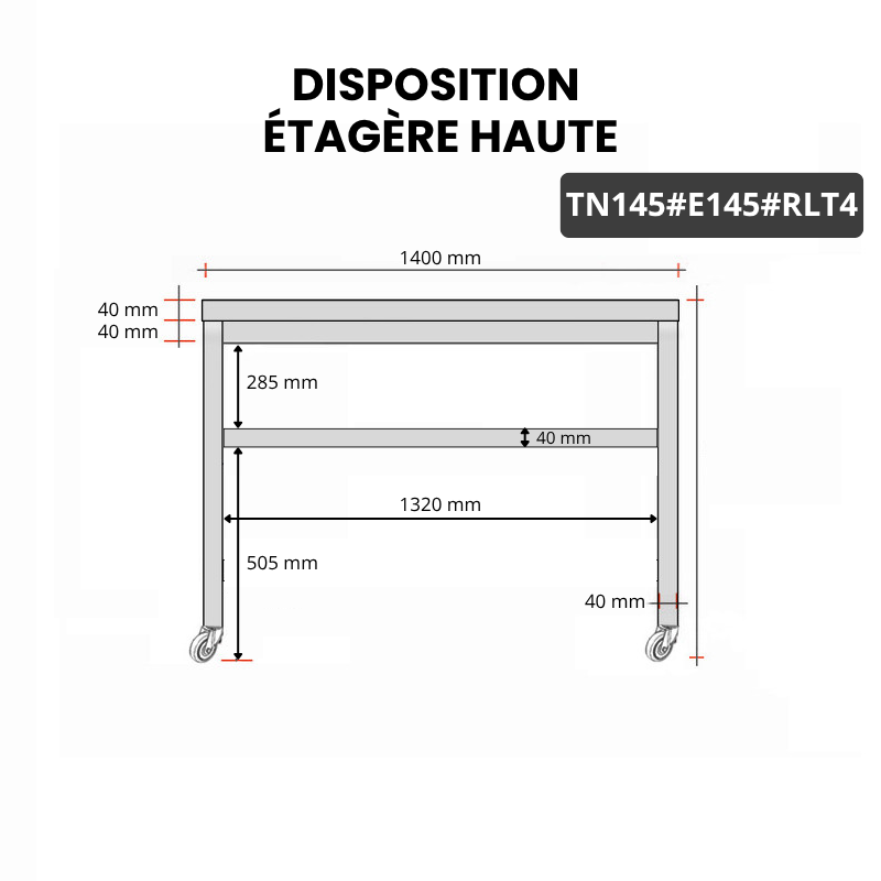 - Compatible avec toutes les tables en acier inoxydable TN145 et TN145A