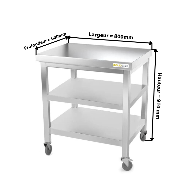 Nos tables en acier inoxydable de marque GOLDINOX® vous permettent un meilleur aménagement de votre cuisine. Elles sont conçues pour une utilisation intensive et supportent des charges très élevées pouvant aller jusqu'à 500 kg. Nos tables inox répondent aux normes obligatoires pour le mobilier en milieu professionnel. Le montage est très simple à réaliser et nécessite peu de temps d'exécution.