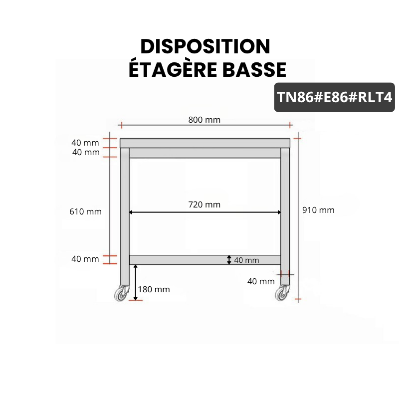 - Compatible avec toutes les tables en acier inoxydable TN86 et TN86A