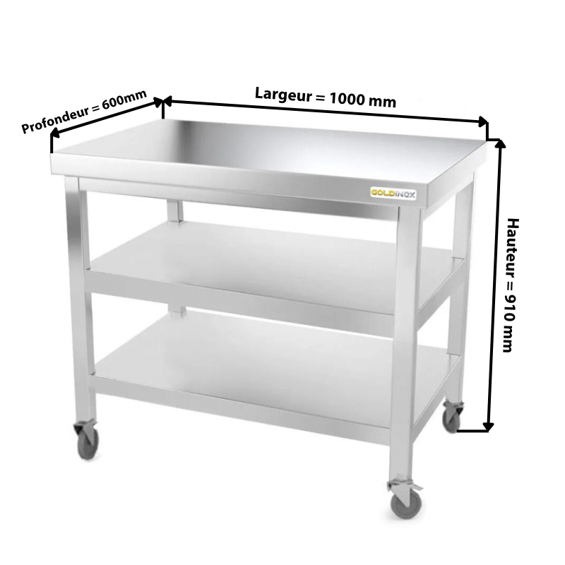Nos tables en acier inoxydable de marque GOLDINOX® vous permettent un meilleur aménagement de votre cuisine. Elles sont conçues pour une utilisation intensive et supportent des charges très élevées pouvant aller jusqu'à 500 kg. Nos tables inox répondent aux normes obligatoires pour le mobilier en milieu professionnel. Le montage est très simple à réaliser et nécessite peu de temps d'exécution.
