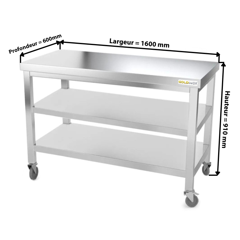 Nos tables en acier inoxydable de marque GOLDINOX® vous permettent un meilleur aménagement de votre cuisine. Elles sont conçues pour une utilisation intensive et supportent des charges très élevées pouvant aller jusqu'à 500 kg. Nos tables inox répondent aux normes obligatoires pour le mobilier en milieu professionnel. Le montage est très simple à réaliser et nécessite peu de temps d'exécution.