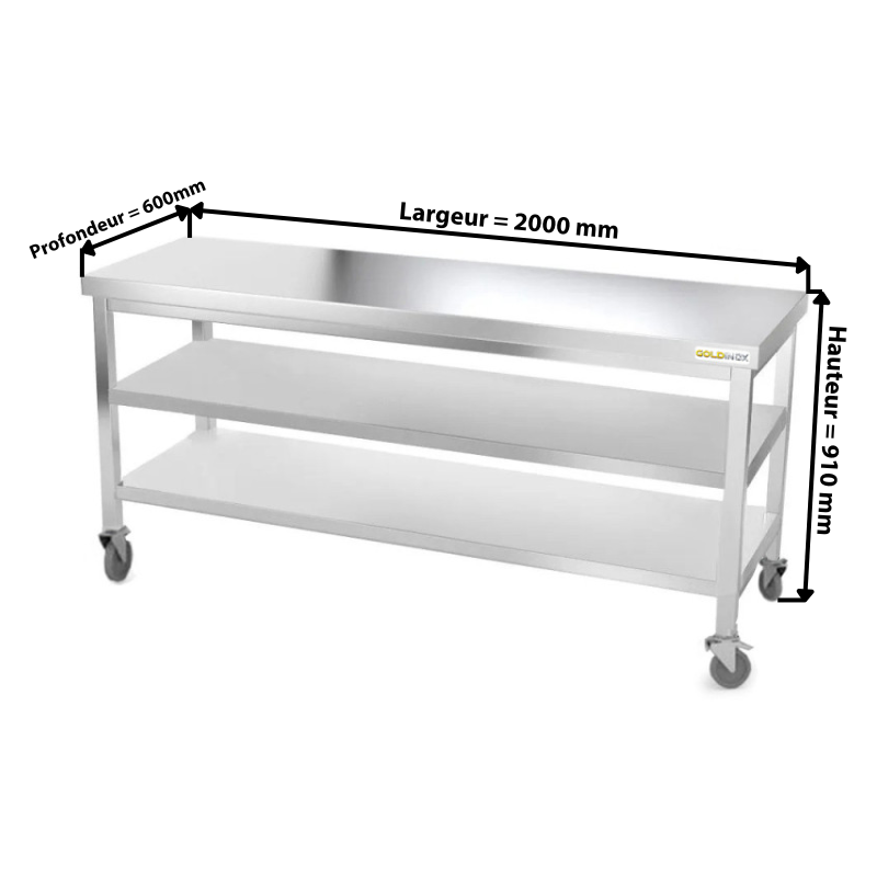- Etagère inférieure 2000 x 600 mm en acier inoxydable pour table de travail inox