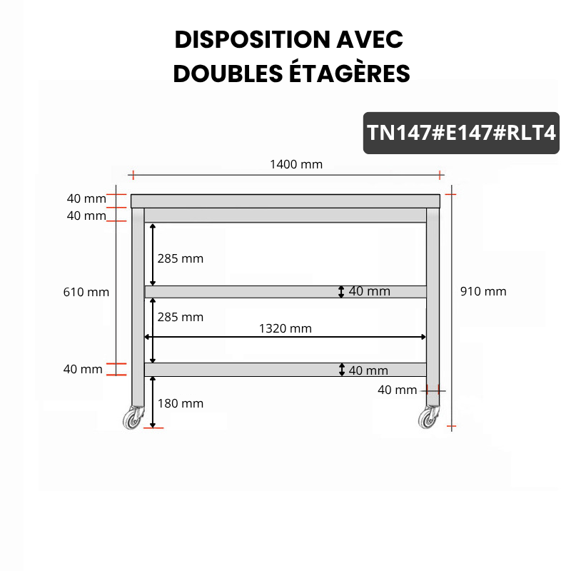 - Compatible avec toutes les tables en acier inoxydable TN147 et TN147A