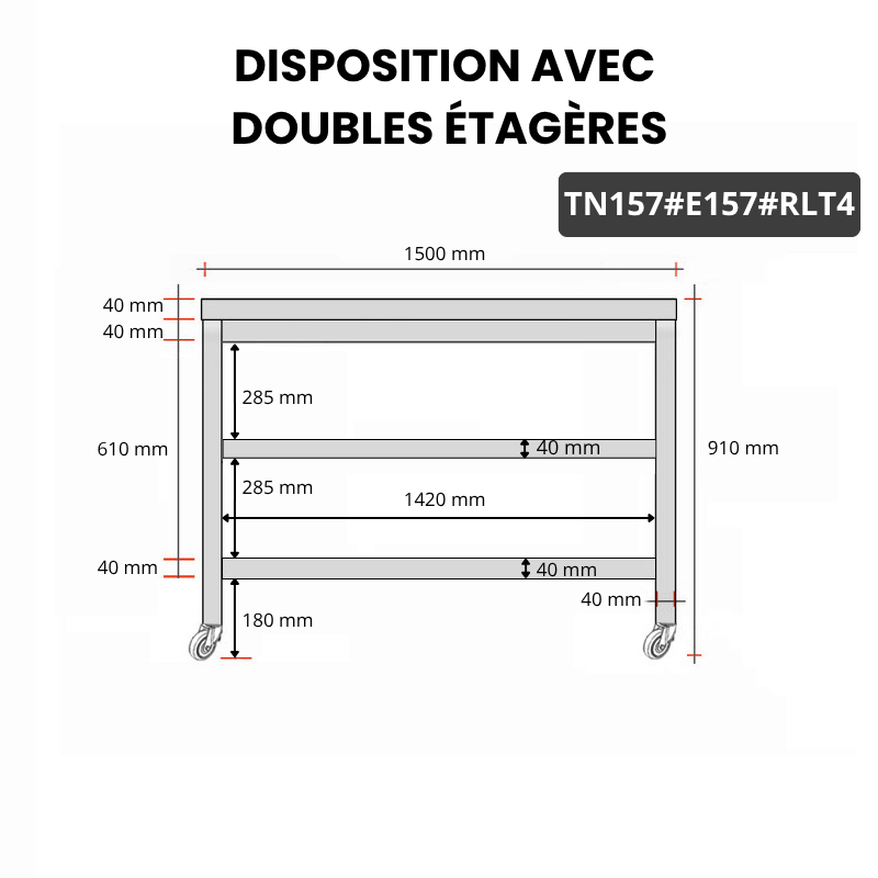 - Compatible avec toutes les tables en acier inoxydable TN157 et TN157A