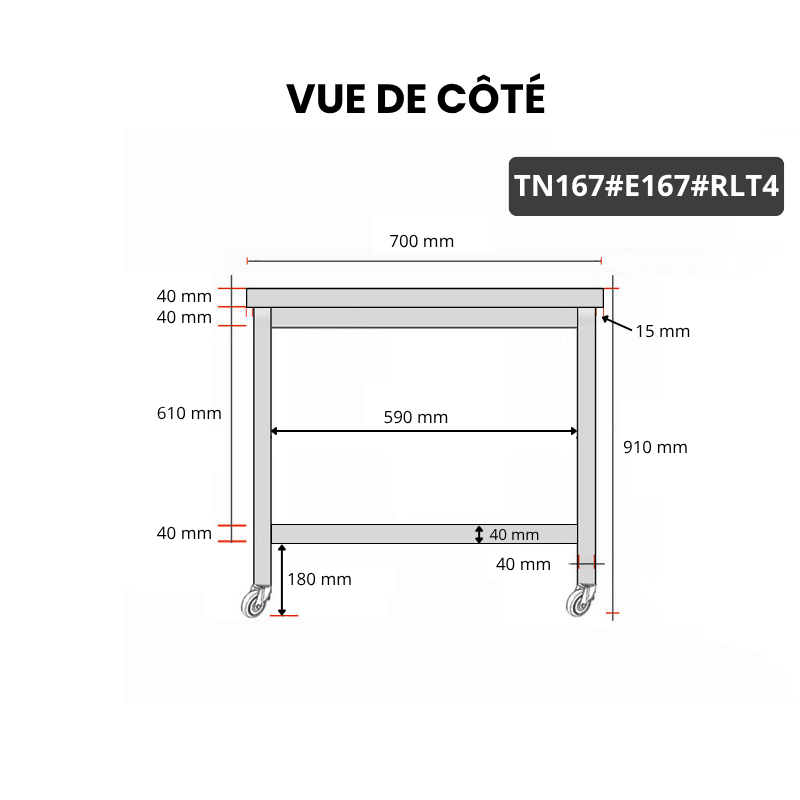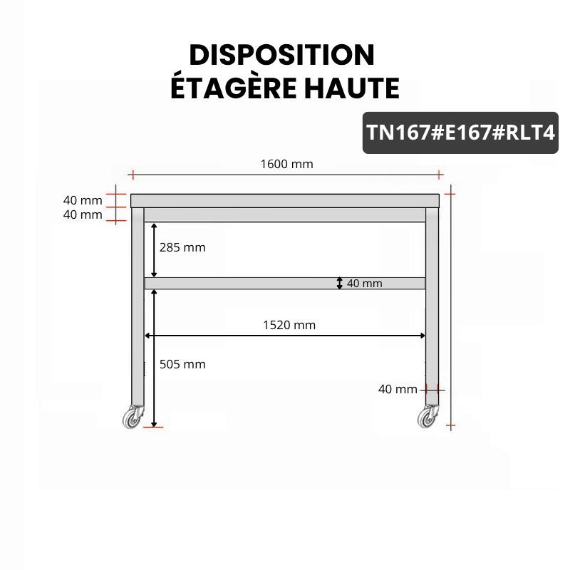 - Compatible avec toutes les tables en acier inoxydable TN167 et TN167A