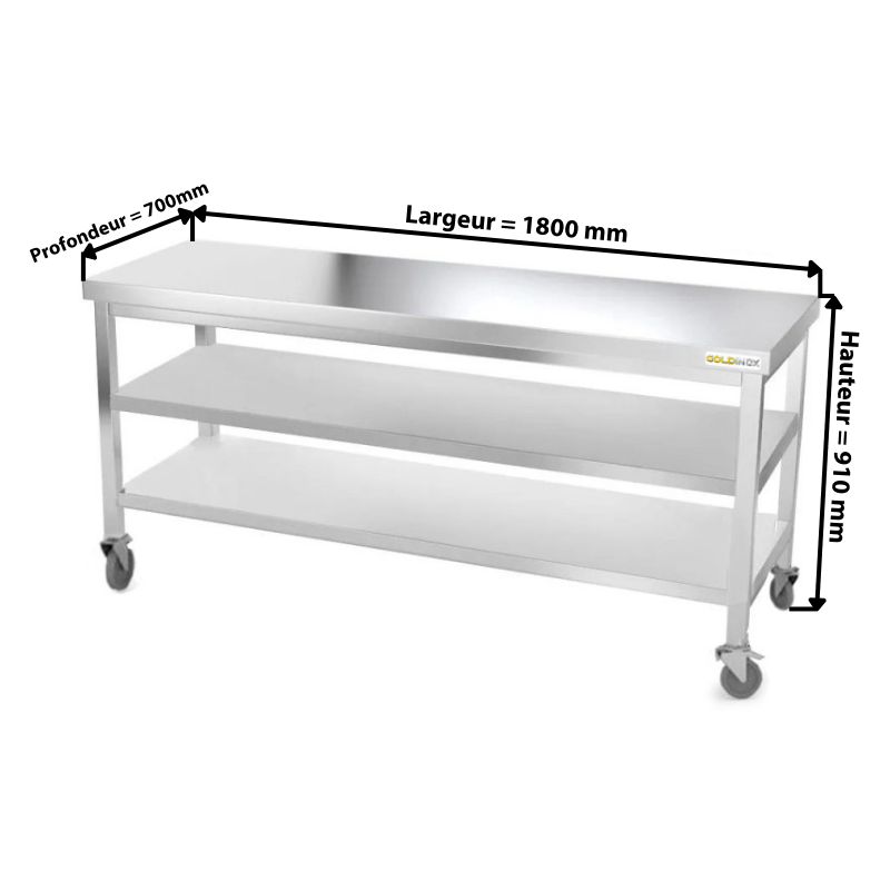 - Etagère inférieure 1800 x 700 mm en acier inoxydable pour table de travail inox