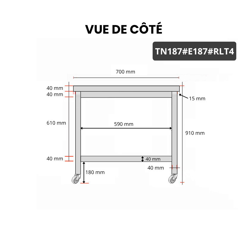 - Compatible avec toutes les tables en acier inoxydable TN187 et TN187A