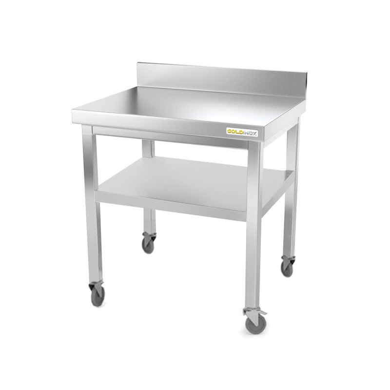- Table de travail professionnelle sur roulettes en acier inoxydable