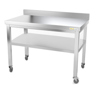 - Table de travail professionnelle sur roulettes en acier inoxydable