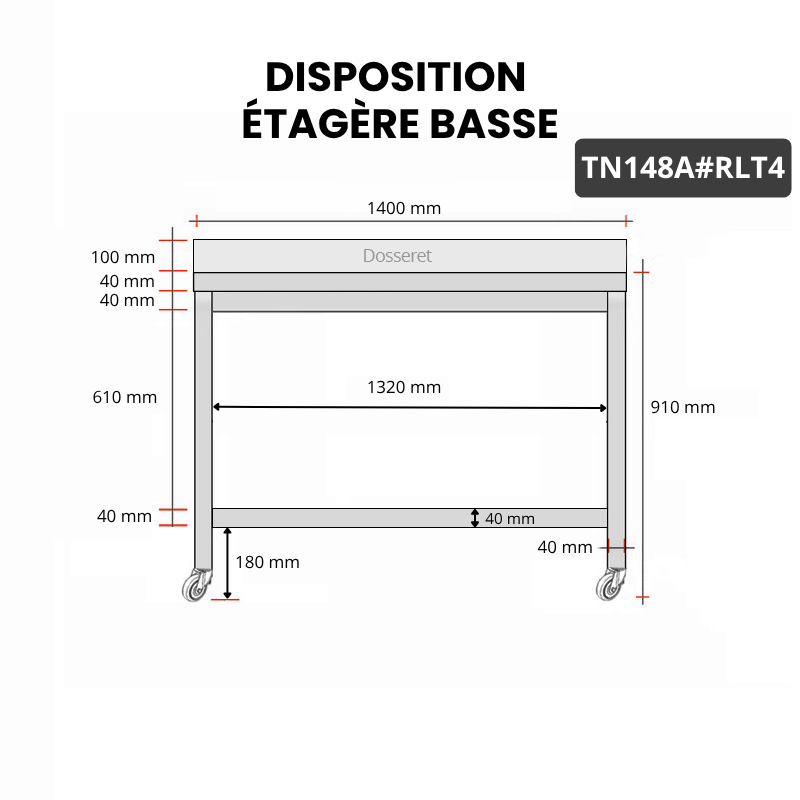 - Compatible avec toutes les tables en acier inoxydable TN148 et TN148A