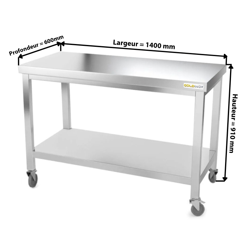 - Table de travail professionnelle sur roulettes en acier inoxydable (TOP AISI 304)