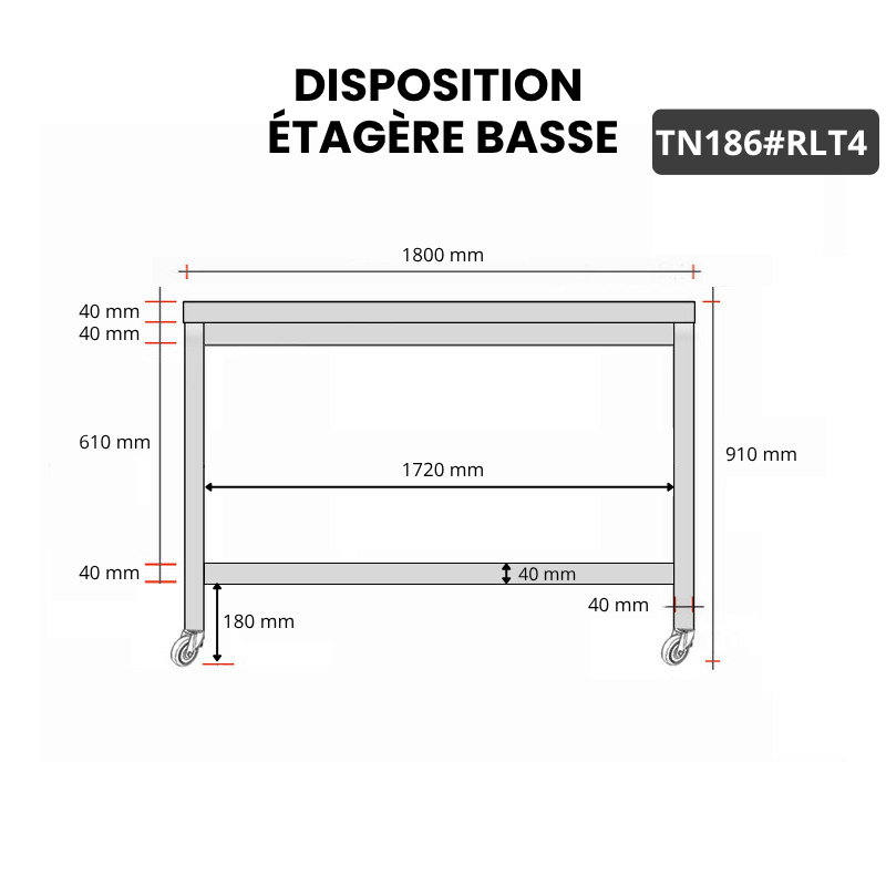 - Compatible avec toutes les tables en acier inoxydable TN186 et TN186A