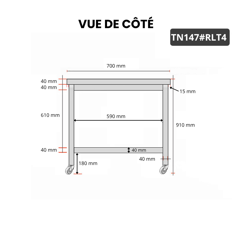 - Compatible avec toutes les tables en acier inoxydable TN147 et TN147A