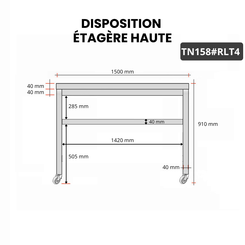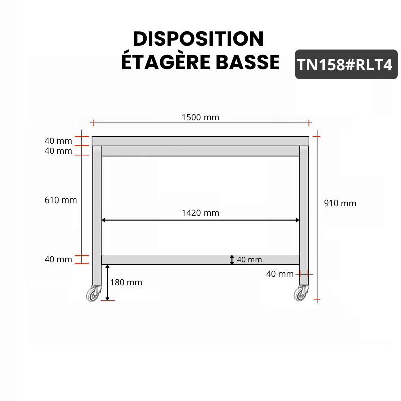 - Compatible avec toutes les tables en acier inoxydable TN158 et TN158A
