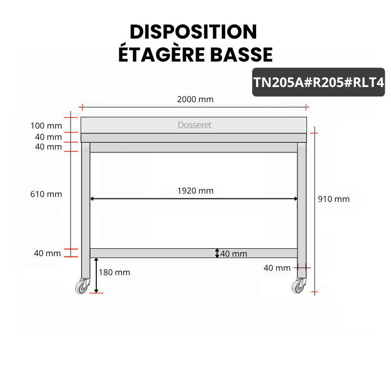 - Compatible avec toutes les tables en acier inoxydable TN205 et TN205A