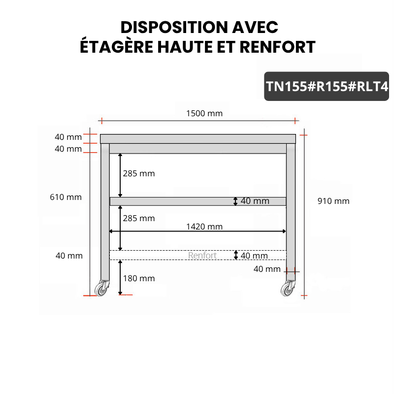 - Compatible avec toutes les tables en acier inoxydable TN155 et TN155A