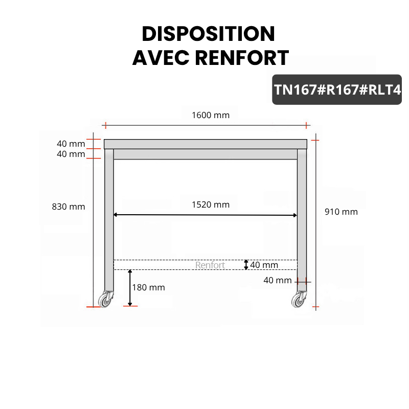 - Compatible avec toutes les tables en acier inoxydable TN167 et TN167A