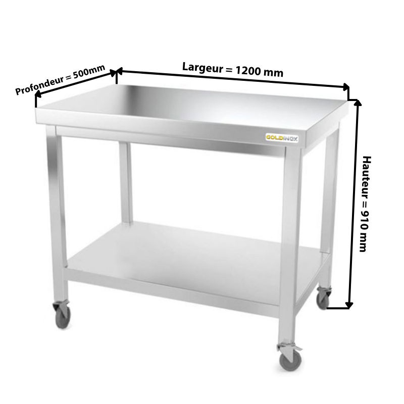 - Table de travail professionnelle sur roulettes en acier inoxydable