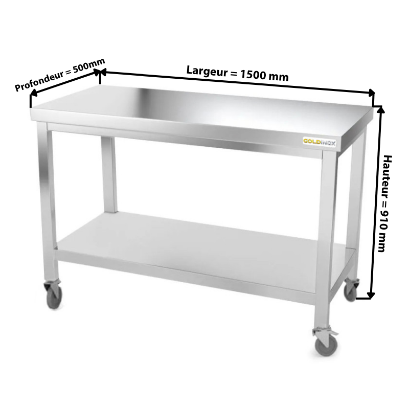 - Table de travail professionnelle sur roulettes en acier inoxydable